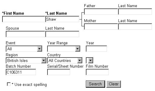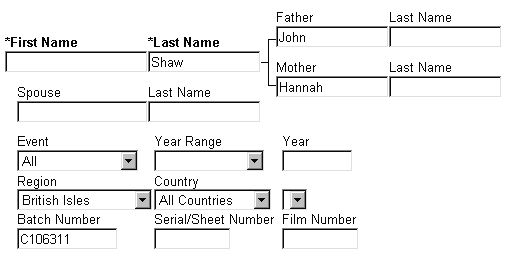 Using the example "Shaw" fill in the fields "Last Name", "Region" and "Batch Number" as below.
