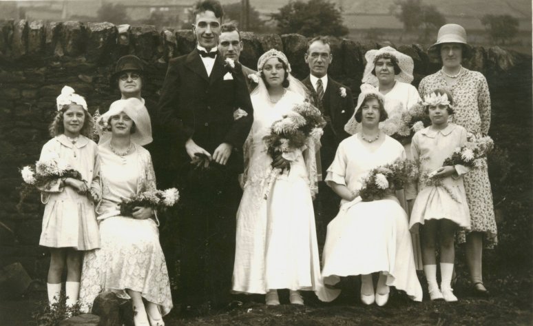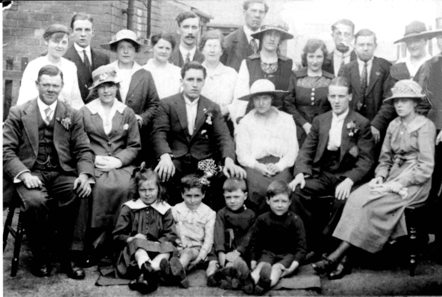 Ernest Hattersley's (1884- 1954), grand-son of William & Sarah above, wedding. His brother Arthur Stanley is behind the bride and his sister Doreen is on the far right. Their mother Sarah Ellen Hattersley (nee Green) is the large lady to the far left wearing white gloves. Doreen married a man called Warner and had one child called David Warner who is a well know actor.